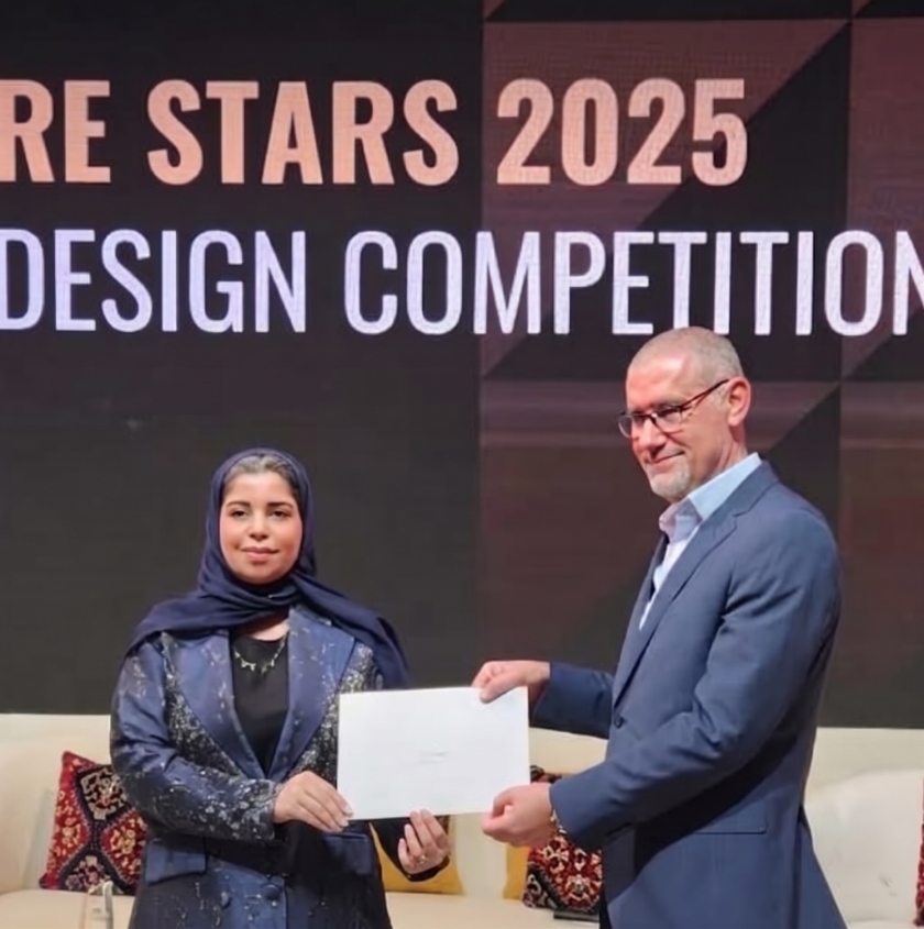AJi is proud to support the next generation of interior design talent through the Future Stars Interior Design Competition. At the second edition of the competition, held during Index Saudi on 11 September 2025, AJi Design Director, Architect Khalid Odaibat, presented a certificate to one of the winning students, who was awarded a three-month paid internship with AJi.